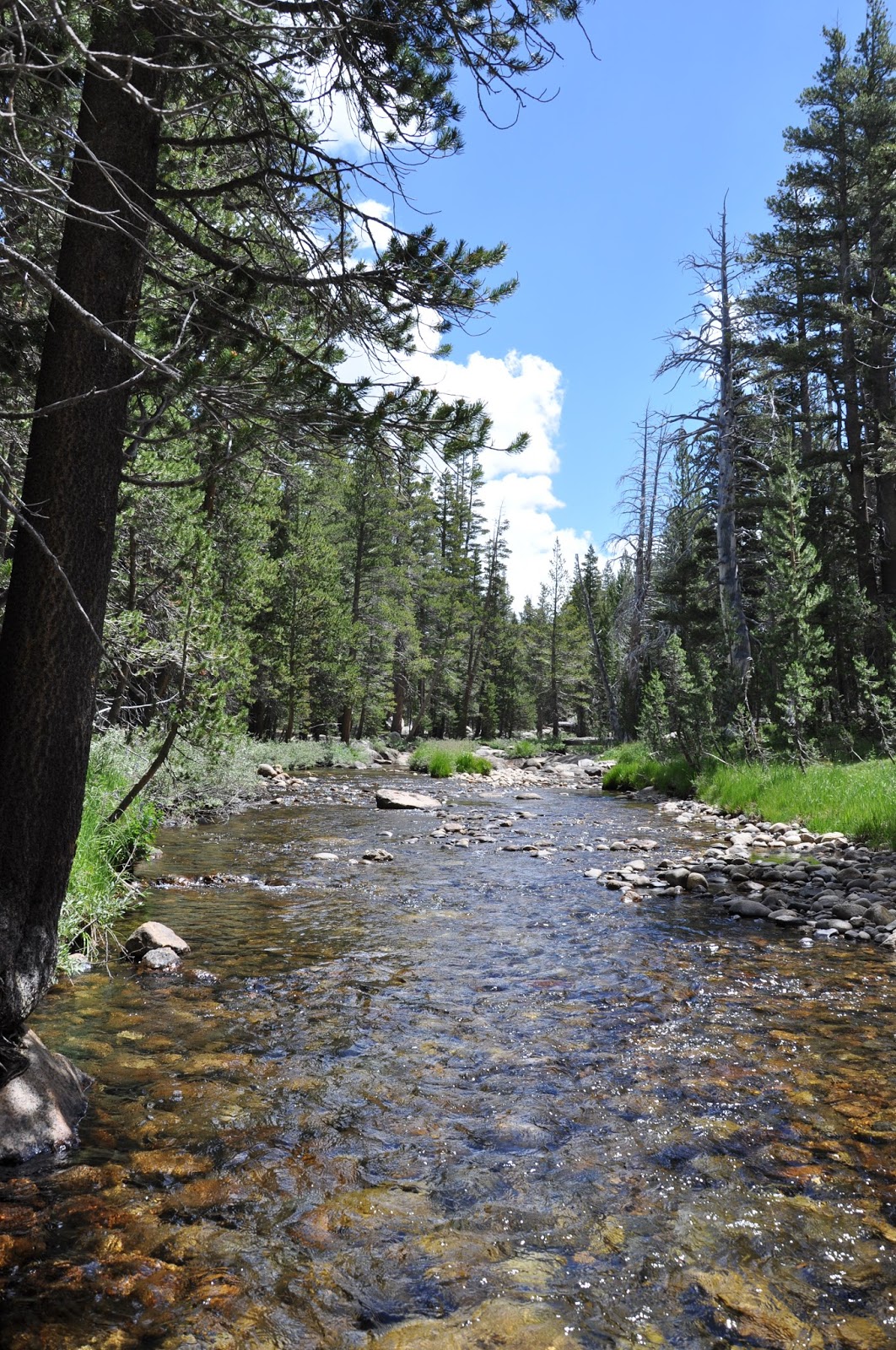 Másnap kora reggel útnak indultunk, mert még 4 órára volt innen a park bejárata. Miután átléptünk California-ba és elértük végre a park bejáratát egy hosszú meredek emelkedőt kellett legyőznünk. Mire felértünk a tetejére, annyira magasan voltunk, hogy kifejezetten hűvösre fordult az idő, ahhoz képest ami lent volt a völgyben. Rögtön ahogy beértünk az erdőbe hatalmas fenyők vettek körül minket. Amint észrevettük, hogy még egy patak is csorgadozik az utunk mellett, megálltunk egy kis pihenőre. Amint kinyitottuk a kocsi ajtaját megcsapott a mennyei fenyő illat, talán még nem is éreztük ilyen koncentrált mennyiségben. Viszont a parkban nagyon sokan voltak, szerintünk azért, mert Kaliforniában jóval több ember él, mint Wyomingban (ott van a Yellowstone).